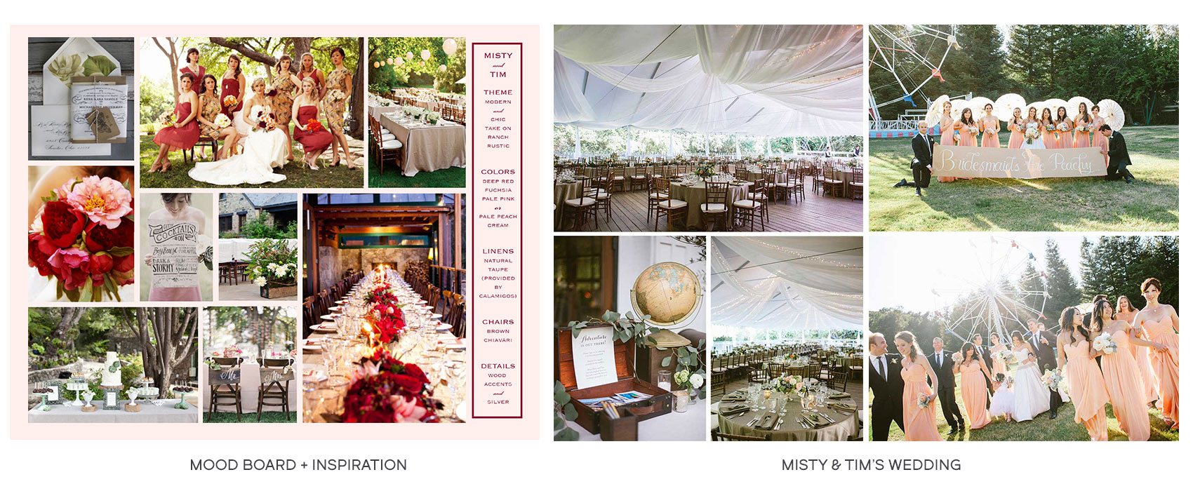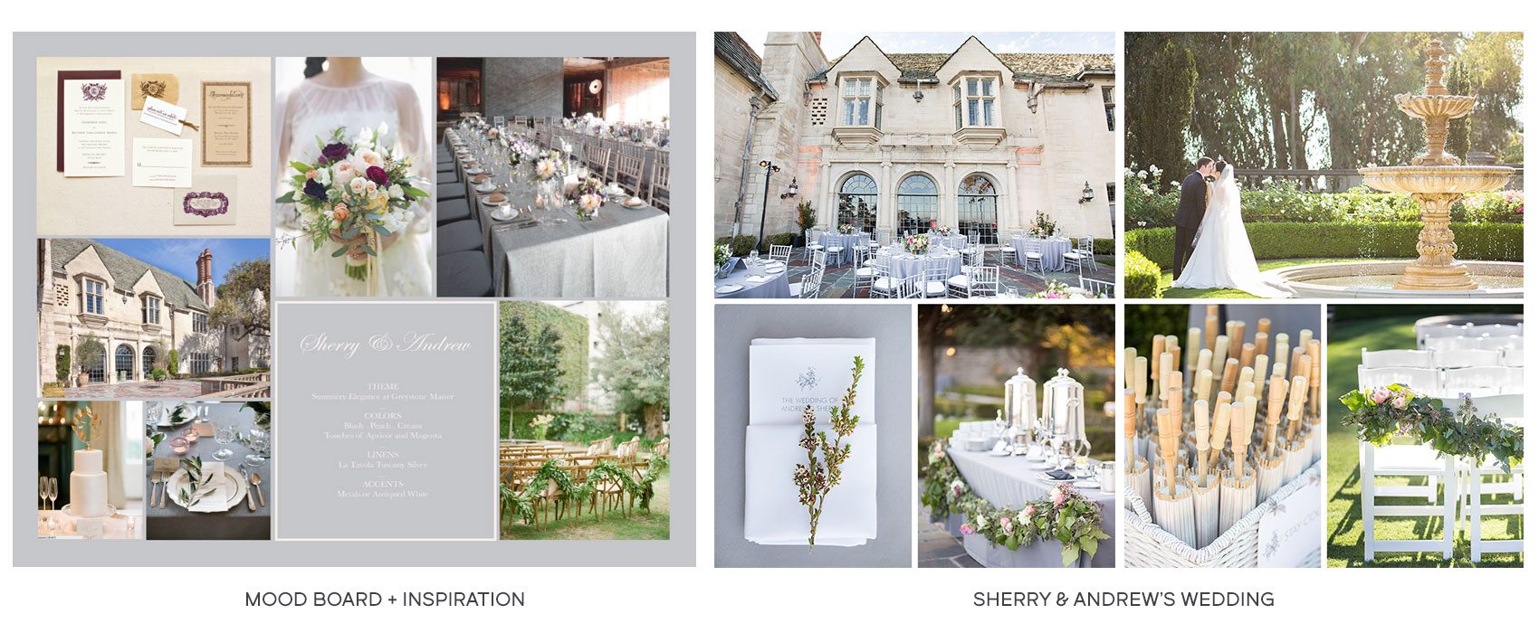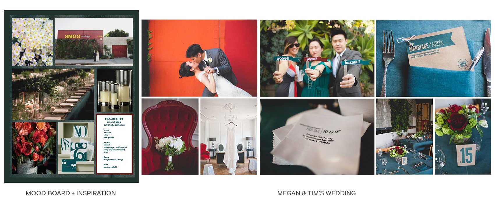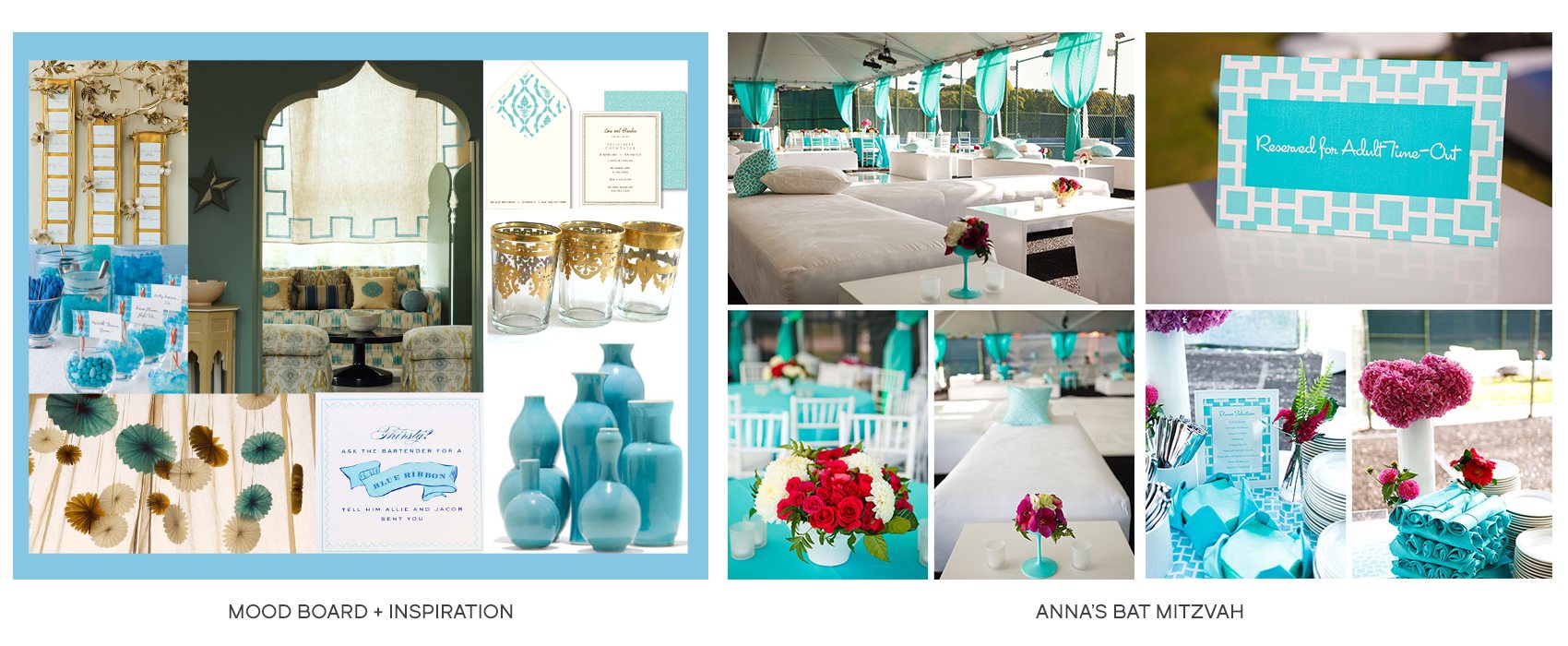 Design and Décor We springboard off of your initial thoughts, concepts, and imagery and then create a mood board to define the design direction for your event. We attend to the overall tone, as well as to specific décor elements like furniture, florals, tabletop pieces, and paper materials.